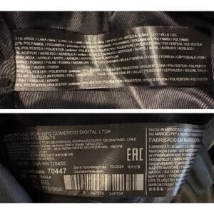 71% wool, 27% polyamide, 1% acrylic, 1% polyester, 1% viscose with 100% polyester faux-fur collar