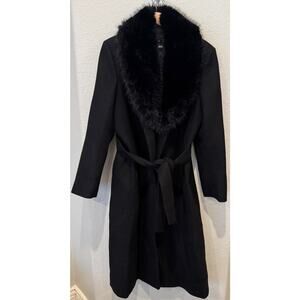 MANGO Manteco Wool Blend Coat with Removable Faux Fur Collar Size US/XL