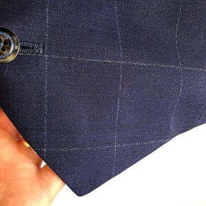 MANGO Mens Suit Vest Blue with Windowpane Check Plaid 100% Wool Size 42