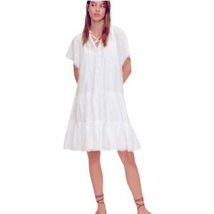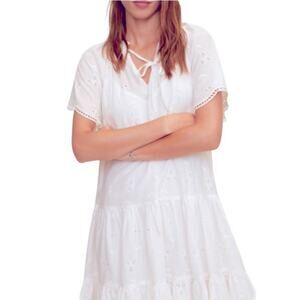 MANGO Open Work Detailed Eyelet Dress White Size M