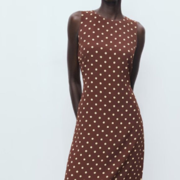 Never worn, missed the deadline to return. Midi, stright, crew neck. Adjustable back tie. Made of 100% viscose