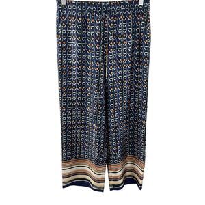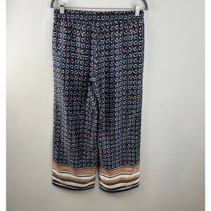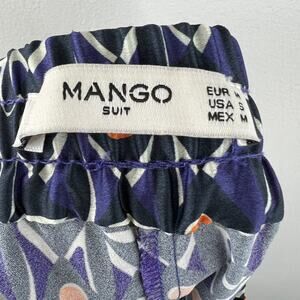 MANGO Purple Multi Stripe Geometric Print Matte Satin Cropped Pant Drawstring S