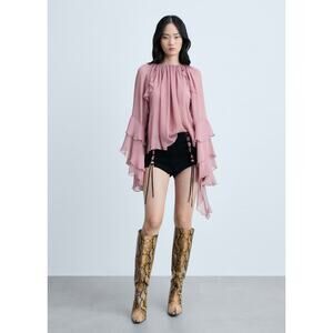 MANGO Ruffled Chiffon Long Sleeves Blouse - 4