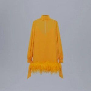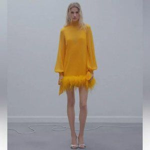 MANGO SEMITRANSPARENT FEATHER DRESS YELLOW