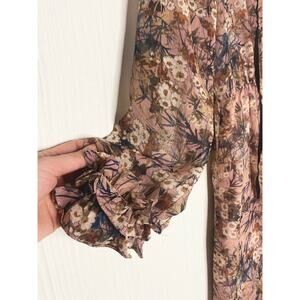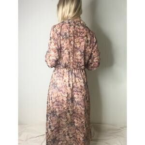MANGO Sheer Chiffon Long Sleeve Floral Maxi Dress US XSMALL