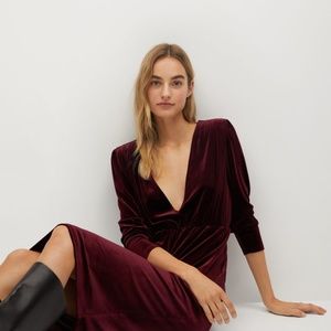 MANGO Shoulder Pad Velvet Dress