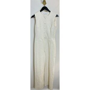 MANGO Sleeveless Tweed Jumpsuit in Cream Size Small