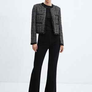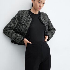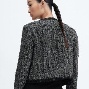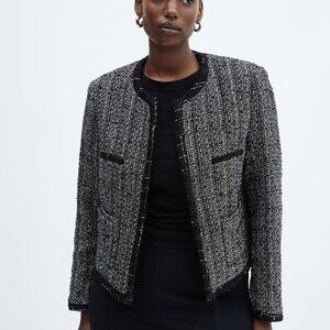 MANGO Bead Trim Tweed Career Jacket Blazer