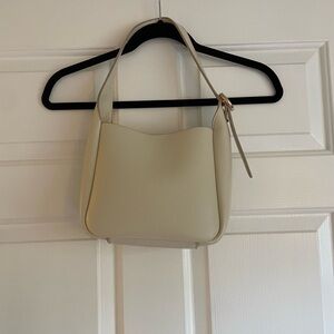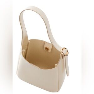A gleaming statement buckle punctuates this otherwise minimalist hobo bag crafted in a roomy silhouette from lightly grained faux leather.