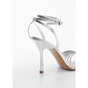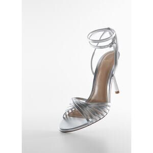 MANGO Strappy Heeled Sandals - 9 - Silver