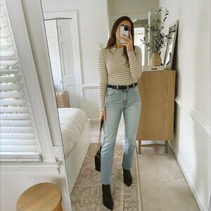 MANGO Striped Long Sleeve Sheer Top (M)