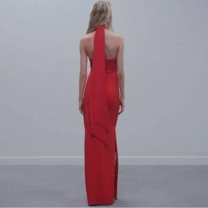 -Romantic and flattering: thanks to its 3D maxi design, side slit at the hem, halter neck and open back, this piece becomes the ideal choice for your
