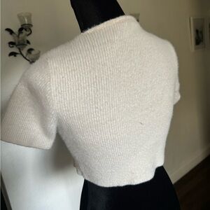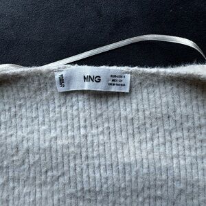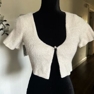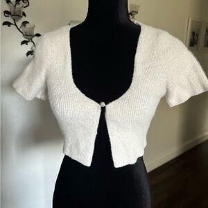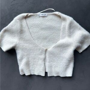 MNG White fluffy cropped cardigan with button front and pearl detail #croppedcardigan