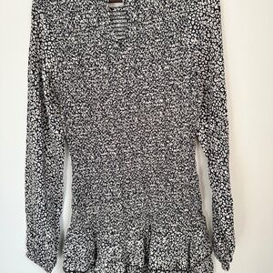 MANGO Teen girls’ dress in a black and white leopard print. Features a smocked bodice for a comfortable fit, ruffled detailing, and a flowy silhouette. Perfect for school, casual wear, or special occasions. Girls size L. Pre-owned in great condition.
