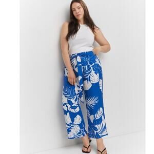 MANGO Tropical Print Flowy Wide Leg Trousers Blue and White Size XS