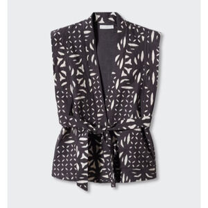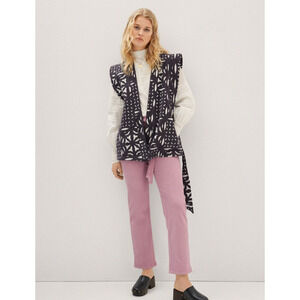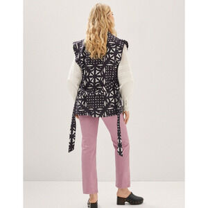 MANGO Two Tone Embroidered Gilet Vest Lagenlook Handmade Layer Scandi Womens S