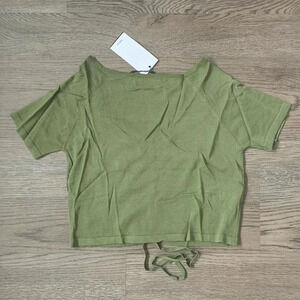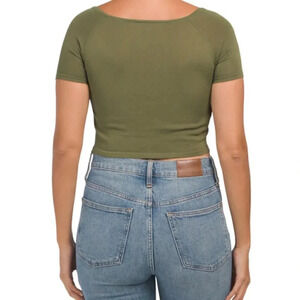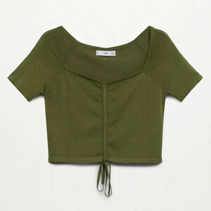 MANGO WOMEN Ruched Short Sleeve Square Neck Cropped Tee - Size M - Green - NWT