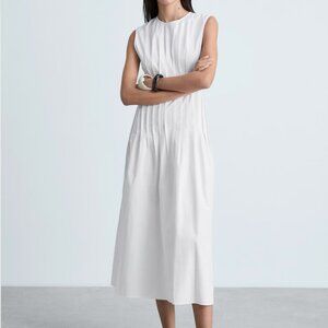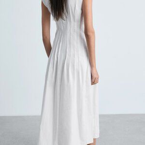 MANGO White Cotton Pleated Midi Dress (NWT)