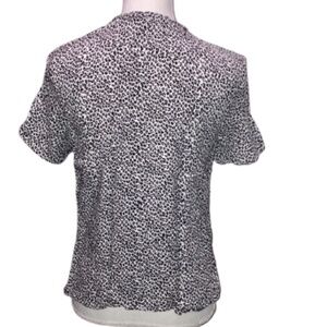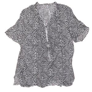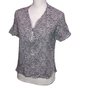MANGO Women's Blouse Leopard Print Zipper Neckline Short Sleeved