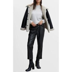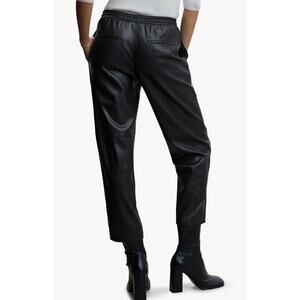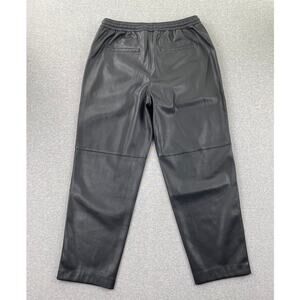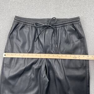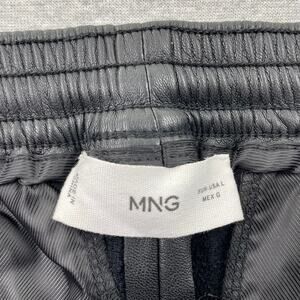 MANGO Womens Faux Leather Pants Large Black Tapered Leg Drawstring Waist Pull On