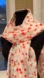 MANGO cherry print off white scarf shawl cotton-linen blend