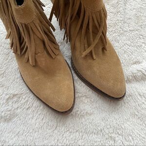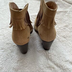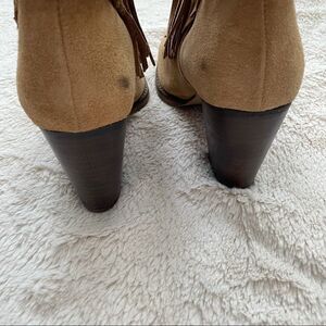 Perfect booties for the fall! Fringe ankle booties. They have a couple spots, I haven’t attempted to clean it. Please see pictures. Size is EU 37 but it fits more like a 6-61/2
