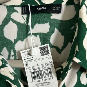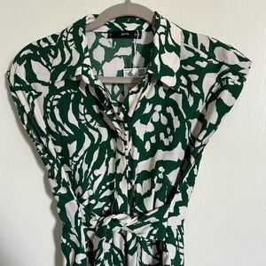 New, never worn with tags. Green and white jumpsuit short sleeve with front buttons and waist tie