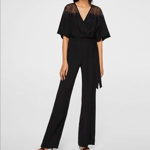 Gorgeous MANGO black lace panel jumpsuit, US size Medium, new with tags.
