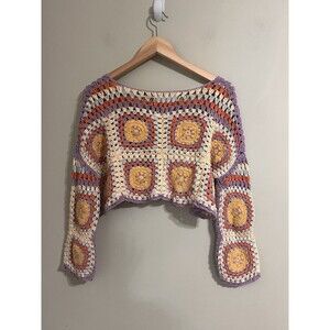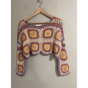 MANGO women's cotton crochet floral stylish classic sweater size M multi color