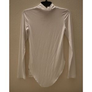 MANGOPOP Collection Women's Sz M White Mock Turtle Neck Long Sleeve Bodysuit