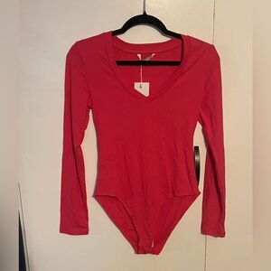 MANGOPOP Deep V Neck Bodysuit Pink, M