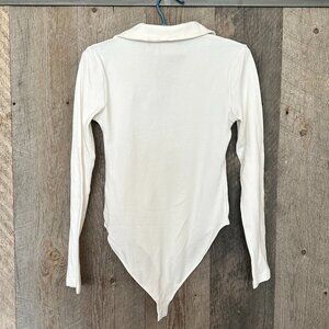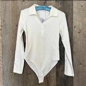 Tight long sleeve bodysuits for women, button down collar tops, slim fit. the collared bodysuit women looks elegant and glamorous, dressy and casual