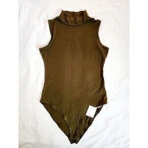 MANGOPOP Women's Army Green Mock Turtleneck Sleeveless Tank/ Bodysuit Size: S