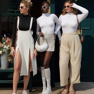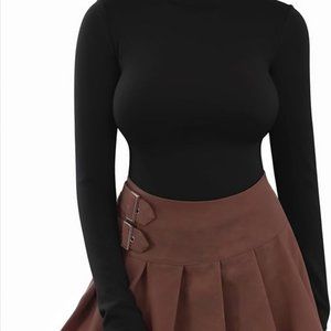 New With Tags MANGOPOP Women's Black Mock Turtle Neck Long Sleeve Tops Bodysuit Jumpsuit Small