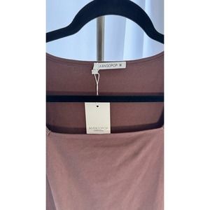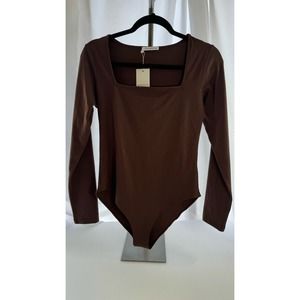 MANGOPOP Women's Square Neck Long Sleeve Tops Bodysuit brown Medium