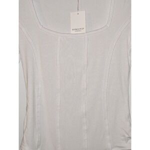 MANGOPop White Bodysuit Square Neck Long Sleeve Top Fitted Corset Detail S NWT
