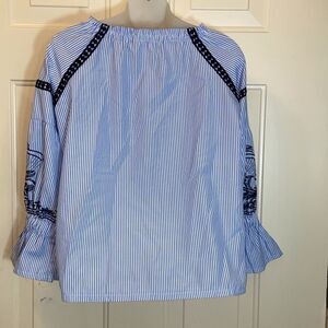 MANGO USA Blue and Black Relaxed Striped Embroidery Women's Blouses Size S