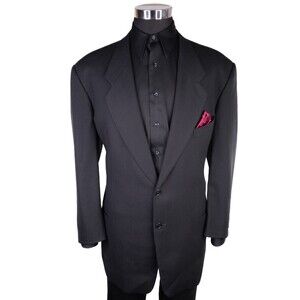 MANI Vintage Sport Coat Men Size 46L/S Herringbone Black 2 Button Wool Blazer