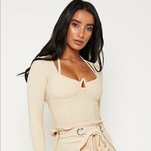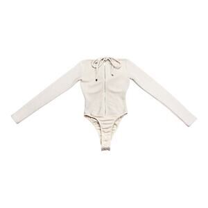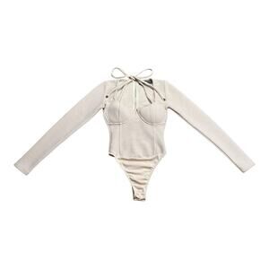 MANIERE DE VOIR Women’s Cream Built In Wire Bra Ribbed Bodysuit 4 UK 0 US XS