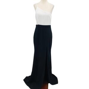 MANIJU Sz S Pure Chic Black White Colorblock Asymmetrical Maxi Dress NEW B141