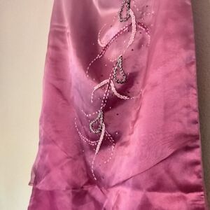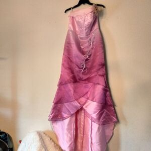 Gorgeous Manny OCAMPO gown with pink ombre colors. High low style strapless. Stunning!! Sorry, my photos aren't doing this dress any justice. Reinforced bust/torso. Zippered back. Layered tiers. Just beautiful. No size tag. Measures 38" long from top of busy to bottom front tier. 56" from top of back to bottom back. Pit to pit 19". Waist area is around 16. Fits a medium perfectly so that's what I'm calling it. lol Make me an offer!