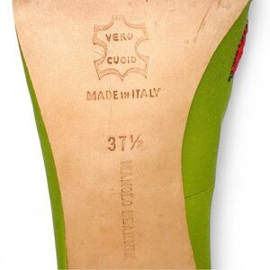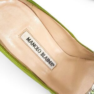 MANOLO BLAHNIK Avocado Satin Crystal Buckle Pointed Toe Pumps Size EU37.5