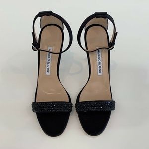 MANOLO BLAHNIK BLACK CRYSTAL SANDALS 7.5 NEW!