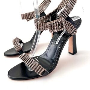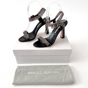 MANOLO BLAHNIK | Bashifa Black Leather Jewel Ankle Bracelet Strap Sandal US 6