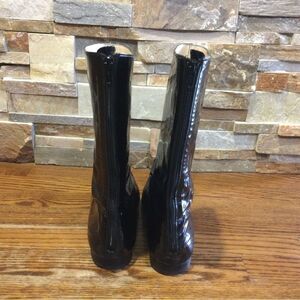 MANOLO BLAHNIK Black Patent Leather Calf High Flat Booties