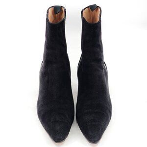 MANOLO BLAHNIK Black Pointed Toe Kitten Heel Ankle Bootie