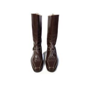 MANOLO BLAHNIK Boots Womens 8.5 Brown Leather Mid Calf Boots