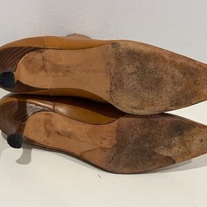 MANOLO BLAHNIK Camel Leather Pointed Toe Kitten Heel Ankle Bootie EU38 US 8