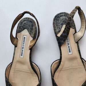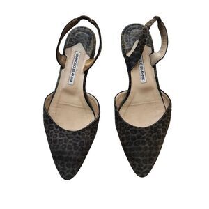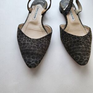 MANOLO BLAHNIK Carolyne Flat Leopard Gray Leather Slingback Pointed Toe Italy 39
