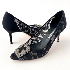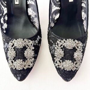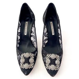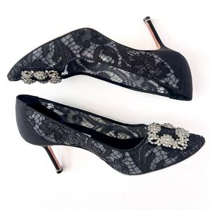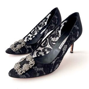 MANOLO BLAHNIK | Hangisi Black Lace Jewel Buckle Embellished Pump Heel EU 40.5